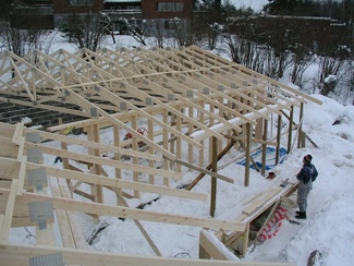 Joulukuussa 2004 alueelle rakennettiin raskaan kaluston kestävä tie ja vanha maja purettiin. Perustus ehdittiin vielä valaa vuoden 2004 puolella. Vuoden 2005 tammi-huhtikuussa talo rakennettiin runkovalmiiksi. Työtä johti rakennuksen suunnitellut Joni Skog ja työssä oli yksi rakennusmies.
